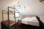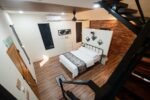 A two-storey chalet that has 4 beds that can accommodate 6 pax comfortably. This chalet is the perfect fusion of modern rustic design, crafted to take full advantage of its stunning location atop a hill, next to a forest reserve. It combines the natural beauty of the wilderness with clean, contemporary lines, creating a harmonious blend of old-world charm and modern comfort. The shingles roof—a timeless feature—ties the home to the surrounding nature, while large windows, sleek finishes, and open spaces invite light and the cool, fresh breeze that sweeps through the landscape.